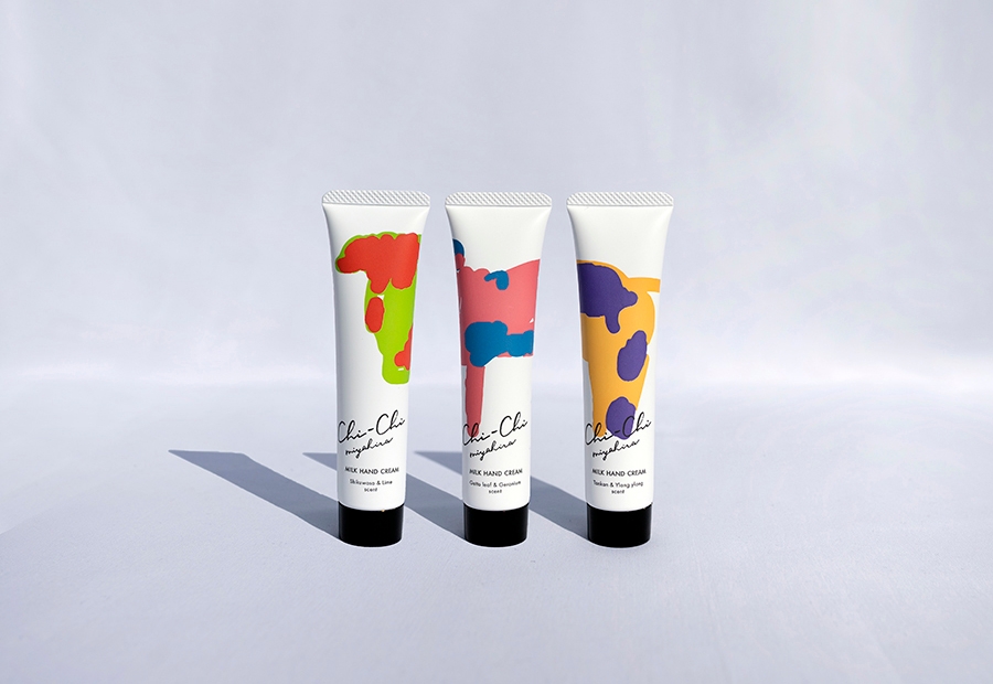 2020年、冬場の余剰乳を上手く活用できないかという考えからChi-Chiミルクハンドクリームは生まれました。宮平牛乳から抽出したホエイを配合し、沖縄をイメージする香りと沖縄の環境でも使いやすいさっぱりとした使用感が人気の従来品ですが、敏感肌の方も使用できるようフリー処方にこだわりリニューアルをいたします。お客さまと一緒にワクワクを作り上げるイラストコンペティションを行い、パッケージも一新いたしました。