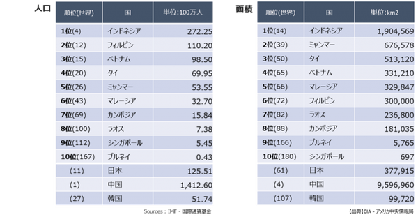 ASEANの人口と面積