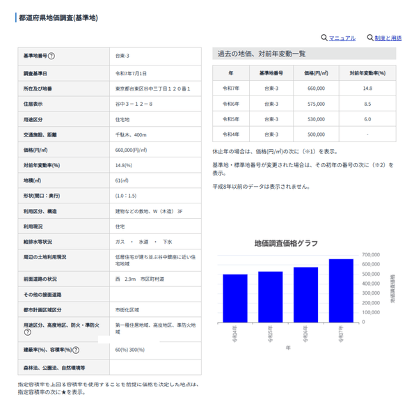 その中で、東京23区内の台東区谷中(基準地「台東-3」)では、上昇率が14.8%でした。