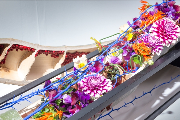 その一方、当時の業界の在り方が嫌いでした。例えばスポーツだったら、選手も観客もわかりやすい競う時のルールというものがある。短距離走だったら0.01秒を競って速い方が勝ちとか。花の業界の場合は、造形の美しさを競う時、どこをどうやって決められているのか基準がはっきりわからない。ある程度知識が身につくと評価の仕方がわかるのですが、業界の上の人達や審査員の中にはそういうちゃんとした目で見ない人たちが多かったのです。正しくは、造形の「痕跡」を残すために過去や記憶・かたち・風景・物事などと結びつけ、造形していくもの。その本来の「ものづくり」の手法を知らない人は、いつも「第六感」に頼り、多くは「センス」や「感性」と言う曖昧な表現で評価して片付けてしまいます。作品の元となる理論や技術を飛び越えて、「センス」や「感性」だけというのは、都合が良すぎる中身の無い造形になりがちですし、それだけを求めていては業界自体これ以上の発展は望めません。そう強く不満を感じていた25歳の時に、日本のチャンピオンを決めようという大会があって。この大会で優勝することができたら私が業界を正していこう!という思いで、願掛けをして出場したんです。結果、日本の中のグランドチャンピオンになることができました。その翌年には、国際フラワーデザインコンテスト「テレフローリスト・オブ・ザ・イヤー」という世界大会に出場し、総合優勝であるTOYを受賞、世界チャンピオンにもなることができました。それからは、花の教育学校フローリスト・アカデミーや花職向上委員会を立ち上げて、さまざまな活動を通して花業界の向上につとめています。設立当時は、まだ若輩者で生意気だったので相当叩かれましたが、やっと今の立場になって誰も文句を言わなくなりましたねw。