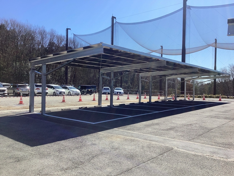 太陽光発電設備を搭載したカーポートを、ソーラーカーポートと呼びます。当社グループでは、ソーラーカーポートをゴルフ場の駐車場に建設、発電した電気をクラブハウスで利用することで運営ゴルフ場における脱炭素を推進しています。現在、「スパ&ゴルフリゾート久慈」・「中京ゴルフ倶楽部 石野コース」・「瀬戸内ゴルフリゾート」においても既存設備が稼働中です。