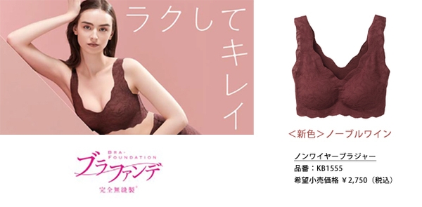 グンゼ株式会社(本社:大阪市北区、社長:佐口 敏康)は、レディスインナーウェアブランド『KIREILABO(キレイラボ)』のノンワイヤーブラジャー「ブラファンデ」より秋らしい深みのあるワインカラーなどの新色を2021年10月から発売しました。