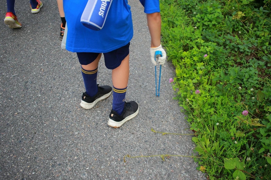 ゴミ拾いの前には、海に流れつく前の、川のゴミを拾うことで、海洋マイクロプラスチック問題を防ぐ一助になること、またライスレジンで作られた手提げ袋を使い、ゼロカーボンを意識したごみ処理を目指せることなどを勉強しました。