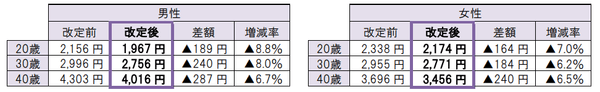 20~40代を中心に保険料を引き下げます。入院・手術保障を主とした基本設計、三大疾病保障を上乗せした設計ともに、現行よりも低廉な保険料でお求めいただけるようになります。