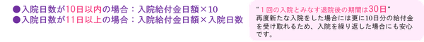 「短期入院10日給付特則」を適用した場合、継続した1回の入院について、疾病入院給付金および災害入院給付金の支払額は以下のとおりとします。