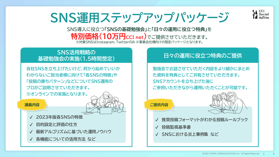 CCI、「CCI Social AdTrim」において「SNS運用ステップアップパッケージ」の提供を開始