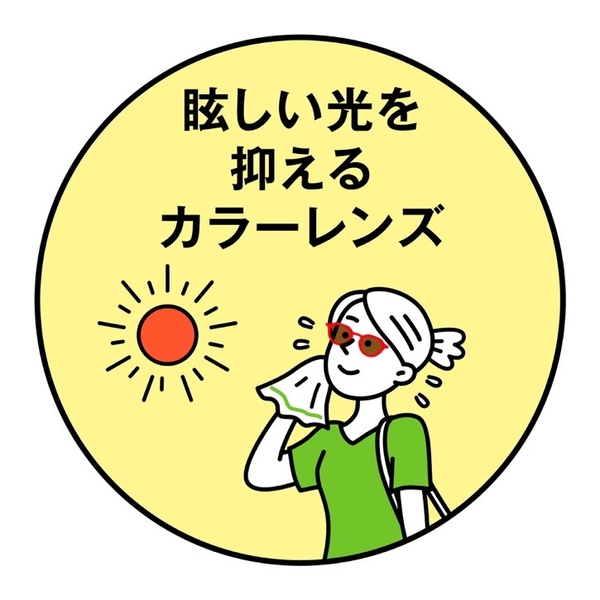 まぶしさを軽減し、光による目の負担を抑えられるカラーレンズ。カラーにより機能性が異なるため、生活スタイルに合わせたカラー選びがおすすめ。ファッションに合わせて自分らしいカラーバリエーションや濃さを選ぶこともできます。