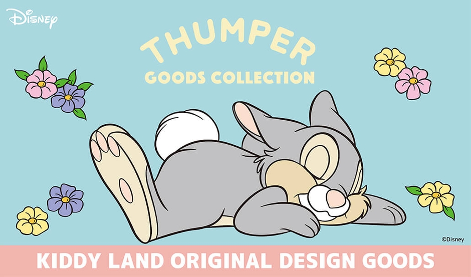 来年の干支は、うさぎということで、新年最初のキデイランドオリジナルのディズニー商品は、『バンビ』に登場するとんすけが主役です。とんすけは、『バンビ』(1942)に登場する、好奇心がいっぱいのウサギ。バンビの遊び友だちです。うしろ足で地面などをトントンたたくクセがあります。