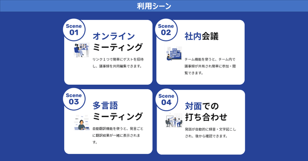議事録の作成が求められるシーンは数多く存在しますが、その作成工数を削減するためにAIを用いた議事録作成サービスが注目されています。アクセリアはその中でも、音声認識率が圧倒的に高い[AI議事録取れる君]をご提供し企業のさらなる業務効率化に貢献してまいります。