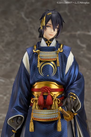 大人気PCブラウザゲーム『刀剣乱舞-ONLINE-』より、「三日月宗近」が8分の1スケールで登場です。立ち姿を忠実に再現いたしました。綺羅びやかな装飾を余すこと無く造形、濃紺の着物に織り込まれた特徴的な模様も緻密に再現しており、鮮やかなグラデーションも相まって、フィギュアならではの魅力を存分におたのしみいただけます。天下五剣で一番美しいともいわれる三日月宗近を、是非、審神者(さにわ)のみなさんの元へお迎えください。