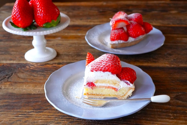 噛むたびサックサクの薄いパイ生地にふんわり軽い生クリームと、なめらかなカスタードが絡み合う!ジューシーないちごとのバランスも良くおかげでペロリと食べられちゃいます。これはリピ確定です!