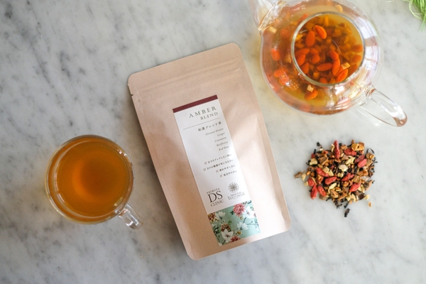 「アンバーブレンド」は、紅茶に近い味わいで甘みも感じられる東方美人茶をベースに、渋谷DSクリニックの漢方外来でも実際に処方している高品質の和漢素材から、温活中の女性にうれしい生姜、シナモン、クコの実、棗(なつめ)を漢方薬剤師がブレンドしました。