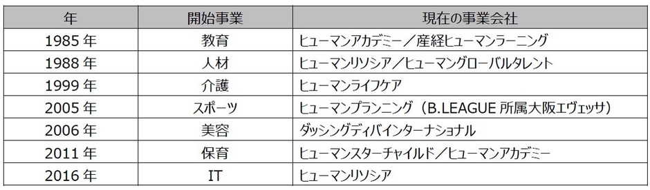 当社は1985年の創業以来、「綱領:為世為人(いせいいじん)」を経営理念に掲げ、教育事業を中心に、人材・介護・保育・IT・美容・スポーツと事業領域を拡げてまいりました。学びの機会だけでなく、その後の活躍の場の提供まで一貫して担うことが教育の本質であるとの考えに基づき各事業を展開し、教育と各事業が相互に連携する独自のビジネスモデルを構築いたしました。
