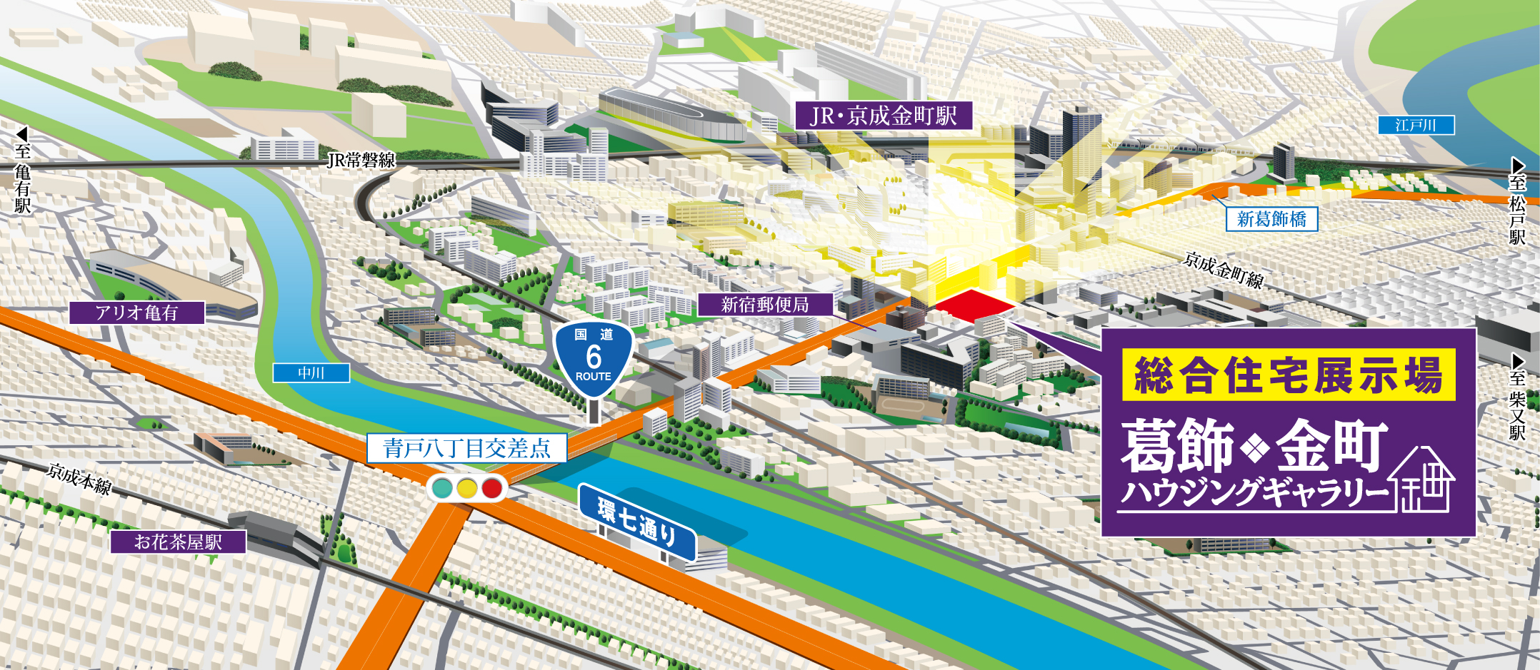 主要道路・国道6号(水戸街道)沿い、JR常磐線・金町駅と京成金町線・京成金町駅からも徒歩約10分という好アクセスの立地に、約1年半ぶりに葛飾区で唯一の総合住宅展示場がオープンいたします。都市型住宅、賃貸・店舗併用住宅、防災・防火住宅などひとりひとりの暮らしにあったリアルな住まいをご提案いたします。