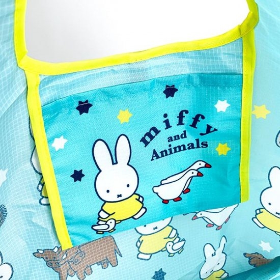 こちらは、爽やかなブルー地のエコバッグ。ミッフィーがアヒルとお散歩中の、ほっこりデザインです。