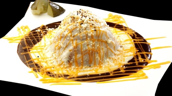 『ジェイズカレー久我山店』の定番メニューである「ジェイズ丼」は、富士山をイメージしたフォルムのボリューム満点なメニューです。
