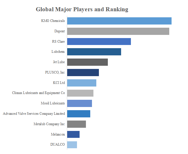 QYResearchのトップ企業研究センターによると、バルブシーラントの世界的な主要製造業者には、KMG Chemicals、Dupont、RS Clare、Lubchem、Jet Lube、PLUSCO, Inc、KCI Ltd、Climax Lubricants and Equipment Co、Mosil Lubricants、Advanced Valve Services Company Limitedなどが含まれている。2022年、世界のトップ5企業は売上の観点から約63.0%の市場シェアを持っていた。