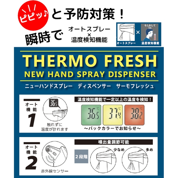 手・指の消毒に検温機能付きの優れものアルコールディスペンサー消毒と検温が一度にできる優れものコンパクトなサイズで持ち運びも便利!サービス2020年12月14日 19:00株式会社スズキ繊維検温作業をする人が要らないので感染リスクも軽減! 一般家庭の玄関先においてもOK!噴出量も2段階調節可能!コンパクトだけど大容量!購入はこちらから