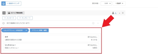アップデートにより、ステップ配信内でエルメアクションの設定が可能になりました。