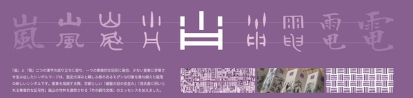 「嵐」と「電」 二つの漢字の成り立ちに遡り、一つの象徴的な図形に融合、少ない要素に昇華させ生み出したシンボルマークは、歴史の深みと親しみ感のあるモダンな印象を兼ね備えた嵐電の新しいシンボルです。要素を凝縮する際、京都らしい「碁盤の目の街並み」、「源氏香に用いられる象徴的な記号性」、嵐山の竹林を連想させる「竹の網代文様」のエッセンスを加えました。