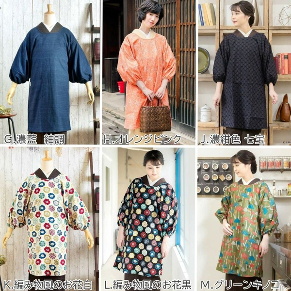 バリエーション豊富でお洋服にもぴったりの柄割烹着