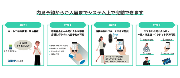 そんな状況に風穴を開けるべく、ショウタイム24は賃貸物件24時間無人内見システム「LEASE24」を開発し、会員登録から内見までを対面でのやりとりなしに完結できる仕組みを構築。2019年1月よりサービスを提供して参りました。