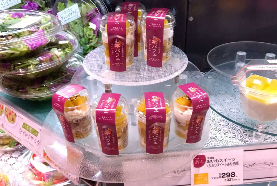 焼き芋を食べやすい大きさにカットした「ひとくち焼きいも」や、オリジナルのさつまいもあんや生クリームを使用した「お芋パフェ」など、さつまいもを活かしたスイーツを品ぞろえいたします。