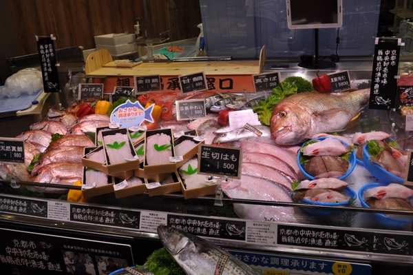 京都市中央卸売市場から届く新鮮な生魚を活気あふれる売り場でご提供いたします。