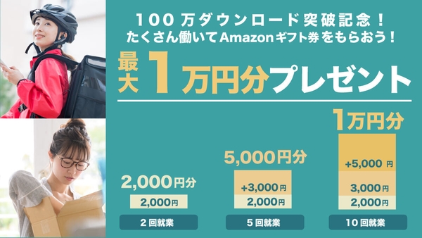 期間中に就業すると就業回数に応じた金額のAmazonギフト券がもらえます!