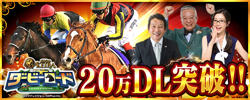 株式会社オルトプラス(本社:東京都渋谷区、代表取締役CEO:石井 武、以下オルトプラス)と、株式会社フジテレビジョン(本社:東京都港区、代表取締役社長:亀山千広、以下フジテレビ)は、スマートフォン向け新作競馬ゲーム「ダービーロード presented by みんなのKEIBA」が、本日11月13日(金)に20万ダウンロードを突破しましたことをお知らせいたします。