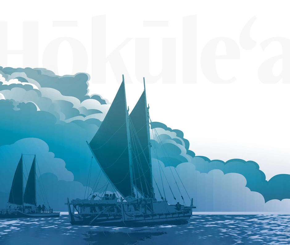 ホクレアとはハワイ語で「喜びの星」(ホク=星、レア=喜び)を意味します。ホクレアは、1975年に釘を1本も使わずに復元された双胴船で、何百年も途絶えていたポリネシアの伝統航海術を蘇らせたことから、自然と調和して生きてきた祖先の知恵や技術、文化や伝統を蘇らせ、民族としての勇気と誇りを取り戻すことに繋がりました。ホクレアは、ハワイアンの伝統文化復興運動のシンボルでもあり、