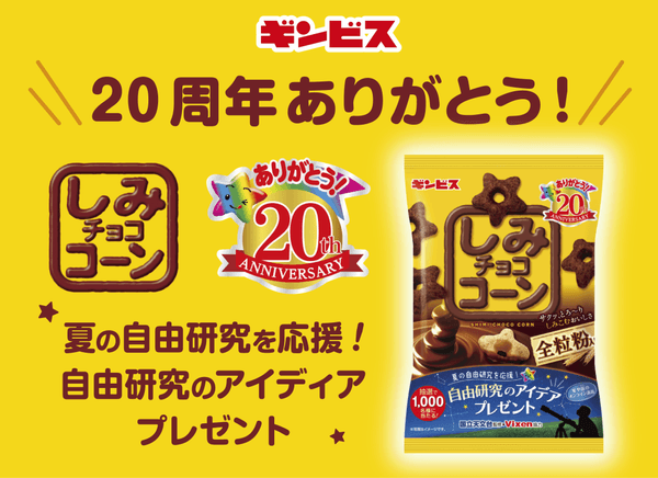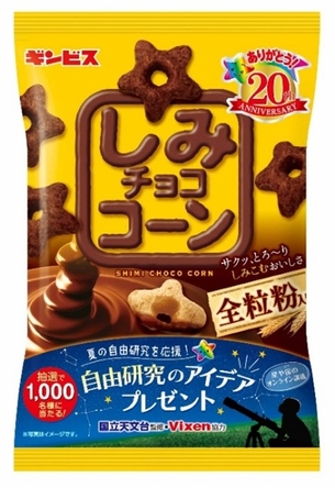 この夏は、星形のお菓子「しみチョココーン」と宙(そら)を楽しもう! 発売20周年を記念したキャンペーン企画にて ギンビス×国立天文台×ビクセンがコラボ。