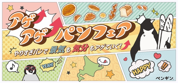 株式会社ペンギン(本社:北海道札幌市、代表:高山 英之)が運営する北海道発のベーカリーチェーン「ペンギンベーカリー」では、節約ムードの重たい空気を吹き飛ばす!「景気も気分もアガるパン」をテーマにした『アゲ↑アゲ↑パンフェア』を開催します。(※一部店舗を除く)