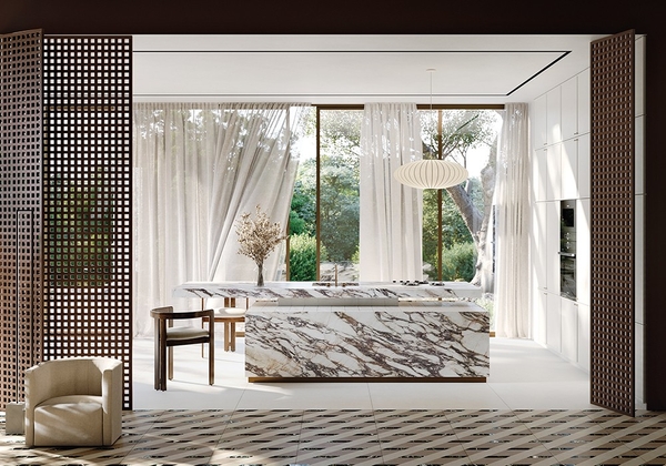 これまで壁や床に「張る」装飾材であったタイルは、空間そのものを「創造する」マテリアルへと進化を遂げました。TILURAのメインマテリアルである「4D CERAMICS」は、独自の製造技術によりタイル内部まで柄が連続するフルボディ構造を実現。切断面や小口にいたるまで、まるで天然石のような美しさを表現できます。歴史ある素材と最先端技術の融合によって、永続的な美しさと普遍的価値を実現しました。高級感あふれるキッチンやリビング、洗面台をはじめ家具やオーダー什器など、幅広いシーンに「非日常」のエッセンスを取り入れることで、住宅からホテルやその他商業施設まで、あらゆる空間に時代を越える価値をもたらします。