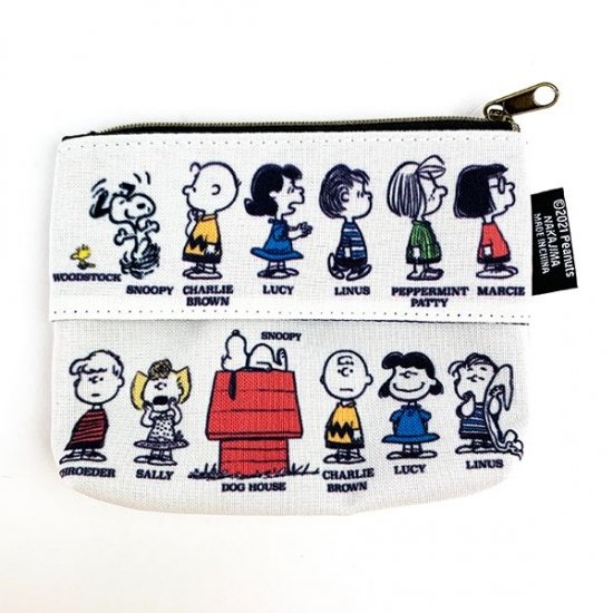カラフル賑やかなスヌーピーの整列アートシリーズ♪ティッシュポーチからミニトートまで幅広く展開中。スヌーピーの仲間たちがたくさん☆