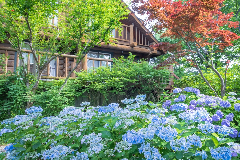 ホテル・ロッジ舞洲の広々としたナチュラリスティックガーデンでは、自然をお手本にデザインされた美しい空間で、鮮やかなあじさいと初登場のユリが見事に競演します。