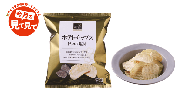 ライフが自信を持っておすすめする「今月の見て見て」の近畿圏10月商品に選ばれた「ポテトチップス トリュフ塩味」は、一口目からトリュフの香りが広がり、贅沢なひとときををお楽しみいただけるポテトチップスです。