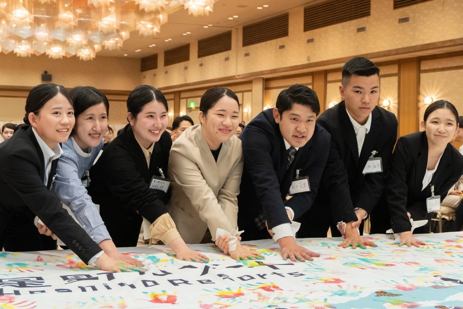 「旅を楽しくする」をテーマに国内外65施設を運営する星野リゾートは、2023年4月3日、青森県十和田市にある奥入瀬(おいらせ)渓流ホテルにて、2023年度春の入社式を実施しました。入社式は2日程に分けて実施し、4月3日に212名が集まり、8日には112名、新入社員と中途採用合わせて324名がこの春入社します。それぞれ、4日間の新入社員研修「Warm-up Camp」でホテル運営を学んだ後、入社式恒例の手形を押す「手形の契り」を交わしました。入社式の最後には、青森を代表する夏の祭り「ねぶた」の祭囃子に合わせて新入社員が跳人(はねと)として踊り、青森の地域魅力を体験しました。