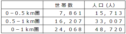・店舗から1㎞圏内は、単身世帯が48.1%、2人世帯が23.5%と全体の7割以上が少人数世帯です。