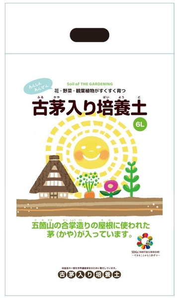 世界遺産五箇山合掌造りの屋根に使われていた「茅(かや)」を粉砕し、再利用したJFCオリジナル培養土。