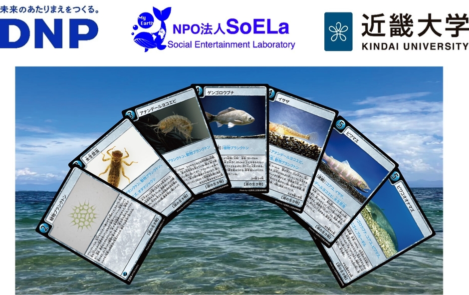 大日本印刷株式会社(DNP)とNPO法人SoELa、近畿大学アカデミックシアターの「循環型社会へのアプローチプロジェクト」は、地球環境について遊びながら学べる対戦型トレーディングカードゲーム「マイアース」の、琵琶湖を舞台とした新しいカードデザインを制作しました。2024年11月30日(土)に大阪府八尾市で開催される2025年大阪・関西万博の機運醸成イベント「爆やお博」にブースを出展し、本カードゲームを使った体験ワークショップを実施します。