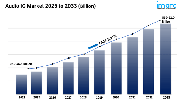 • オーディオIC市場予測2033: IMARCグループは、2033年までに市場が620億米ドルに達すると予想しています。