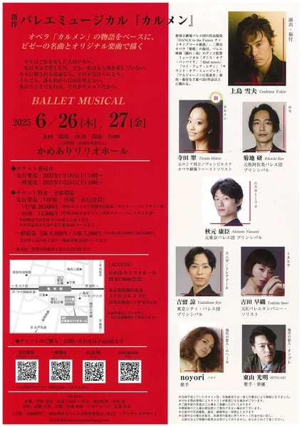 新作バレエミュージカル『カルメン』が2025年6月26日 (木) 〜 2025年6月27日 (金)にかめありリリオホール(東京都 葛飾区 亀有 三丁目26番1号)にて上演されます。