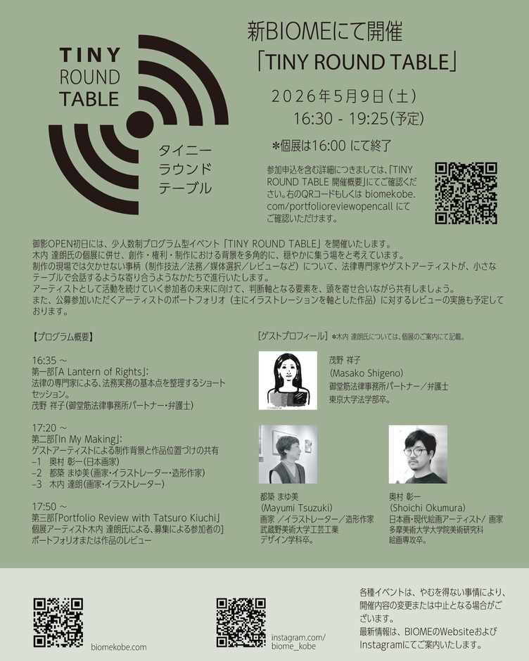 2026年5月9日 木内達朗個展の付随イベント TINY ROUND TABLEでポートフォリオレビュー公募中!