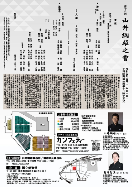 『第18回 山井綱雄之會』が2023年5月28日 (日)に国立能楽堂(東京都渋谷区千駄ヶ谷4-18-1)にて上演されます。チケットはカンフェティ(運営:ロングランプランニング株式会社、東京都新宿区、代表取締役:榑松 大剛)にて発売中です。