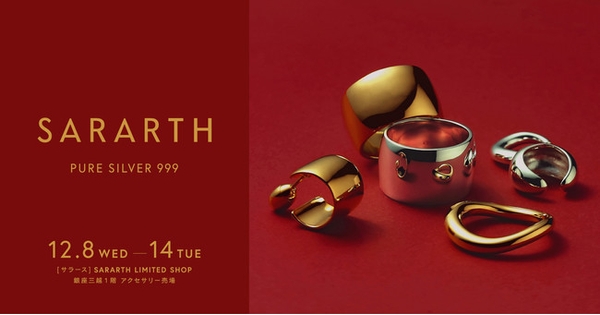 ジュエリーブランド "SARARTH(サラース)"は、ポップアップストア「SARARTH LIMITED SHOP」を、銀座三越 1階 プロモーションにて12月8日(水)~12月14日(火)の7日間の期間限定で出店いたします。今回は、人気の高いGLEAM、ELLIPSEコレクションをフィーチャーした "HOLIDAY SELECTION 2021" アイテムを中心に、高硬度PURE SILVER 999/24金(K24)プレーティングの2色で展開する各ジュエリーを揃えます。