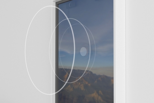 またカメラモジュールによって、窓を見ている人の顔の位置や角度をリアルタイムにトラッキングし、その動きにあわせて景色も連動できるようになりました。窓の向こう側の風景が、まるで本物の窓から見ているかのように広がっていきます。