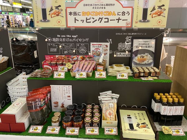 たまごだけではなく、全国から取り寄せて品評会をし「たまごかけごはんに本当に合うトッピング」として評価の高かったものだけを販売しているコーナーも!