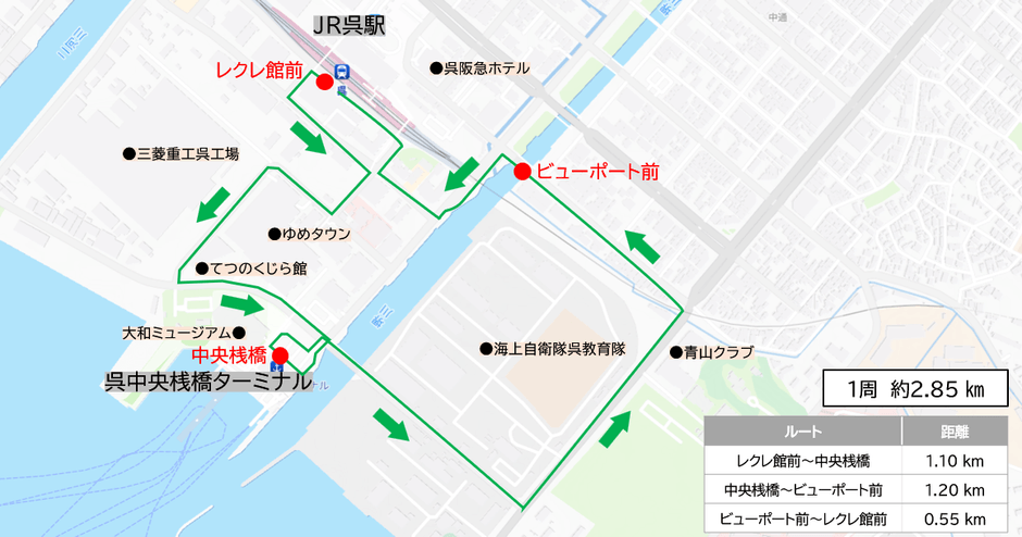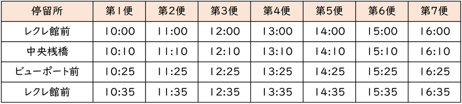 ●走行ルート :レクレ館前~中央桟橋~ビューポート前~レクレ館前(下記図参照)