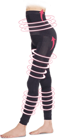 ハイウエストのレギンスでお腹周りはコルセットで、脚箇所には25にも及ぶ着圧ポイントでグッと引き締めしっかりサポートしてくれます。お腹と足を引き締めることでお尻をグッと上に持ち上がるため、脚が長くなったような印象をもたらし、誰でも簡単に「細くて長い美脚」を目指すことができます。